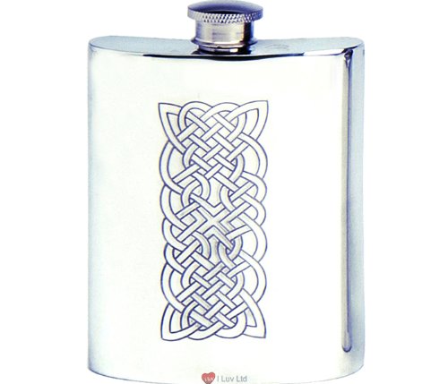 6oz Pewter Hip Flask Celtic Rope Features Ideal for those cold days to share and enjoy a whisky nip Made in the UK from lead-free pewter World renowned pewter manufacturers Leak-proof screw top with optional captive top Comes in gift box This beautiful Hip Flask in Pewter is manufactured