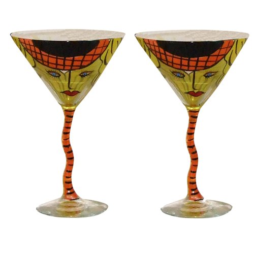 ... ArtisanStreet's Whimsical Faces Martini Glasses. Set of 2 in Bright Orange. Hand Painted, Signed by Artisan.Cheapest Price 2013 ArtisanStreet's Whimsical Faces Martini Glasses. Set of 2 in Bright Orange. Hand Painted, Signed by Artisan.
