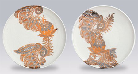 The Bohemian Paisley dinnerware and serving collection by Caskata is right on trend Hand-decorated in the USA with 23 karat gold and platinum on fine porcelain Dishwasher safe but we recommend hand washing to preserve the luster Do not microwave Dipping dishes salad and canape plates are shipp